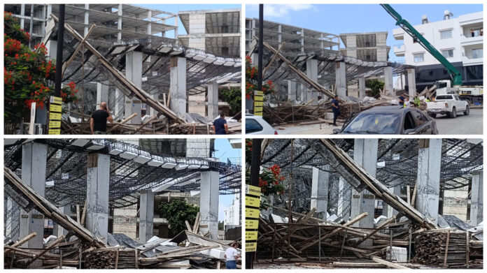 Gazimağusa’da 14.00 sıralarında bir inşaatta beton dökümü sırasında çökme meydana geldi.