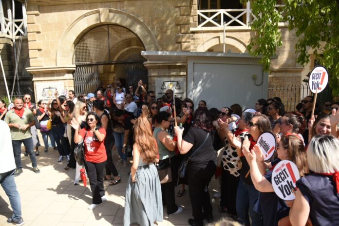 Anayasa Mahkemesi’nin Disiplin Tüzüğü’nde yapılan değişikliği iptal etmesi, Lefkoşa’daki Mahkemeler önünde bekleyen Kıbrıs Türk Orta Eğitim Öğretmenler Sendikası (KTOEÖS) üyesi öğretmenler tarafından alkışlarla karşılandı.