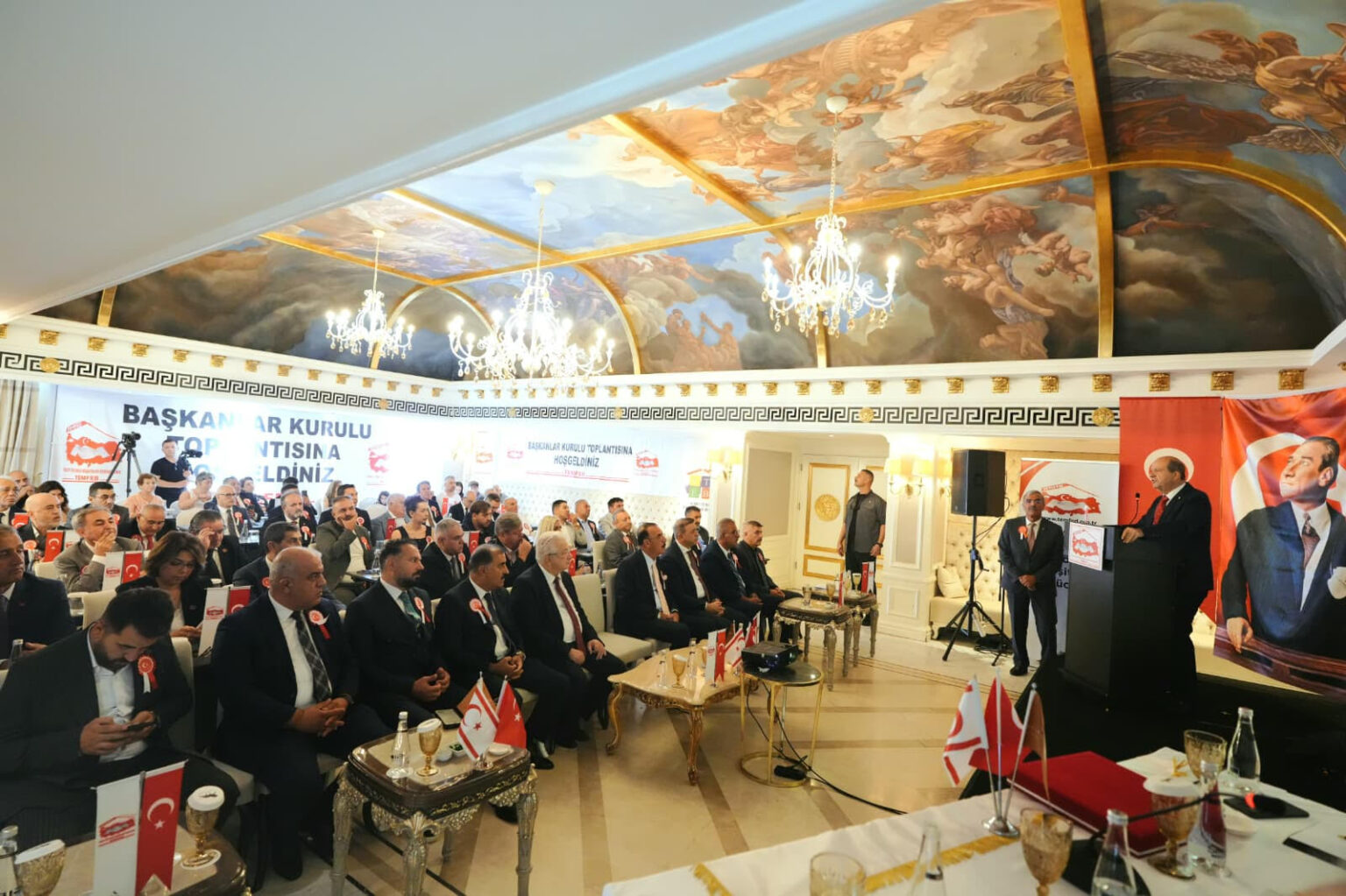 Cumhurbaşkanı Ersin Tatar, Türkiye Tüm Emlak Müşavirleri Federasyonu’nun (TEMFED) Kuzey Kıbrıs Türk Cumhuriyet’nde gerçekleştirdiği ikinci başkanlar kurulunun açılış toplantısına katıldı.