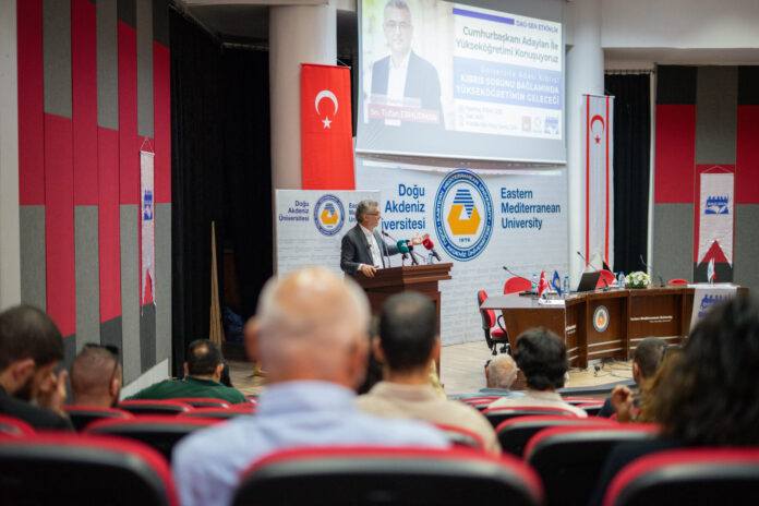 Cumhuriyetçi Türk Partisi (CTP) Genel Başkanı ve cumhurbaşkanı adayı Tufan Erhürman, Doğu Akdeniz Üniversitesi Akademik Personel Sendikası (DAÜ-SEN) tarafından düzenlenen “Cumhurbaşkanı Adayları ile Yükseköğretimi Konuşuyoruz” etkinliğinde akademisyenler ve öğrencilerle bir araya geldi.