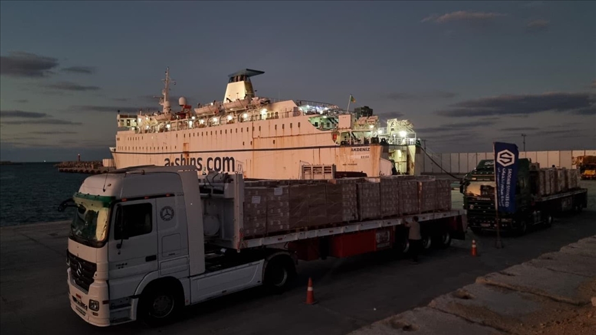 Tırları limandan Afet ve Acil Durum Yönetimi Başkanlığı (AFAD) yetkilileri uğurladı.