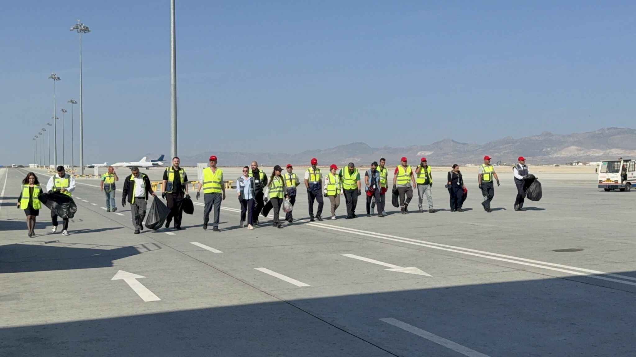 Ercan Havalimanı’nda uçakların hareket alanlarında bulunabilecek ve uçuş emniyetini olumsuz etkileyebilecek “Yabancı Madde Döküntüleri” (FOD) için farkındalık yürüyüşü yapıldı.