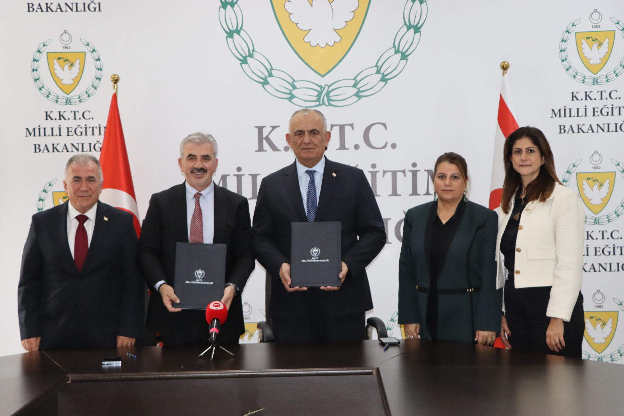 Protokole Milli Eğitim Bakanı Nazım Çavuşoğlu ile Telsim Genel Müdürü Sefer Tüz imza koydu.