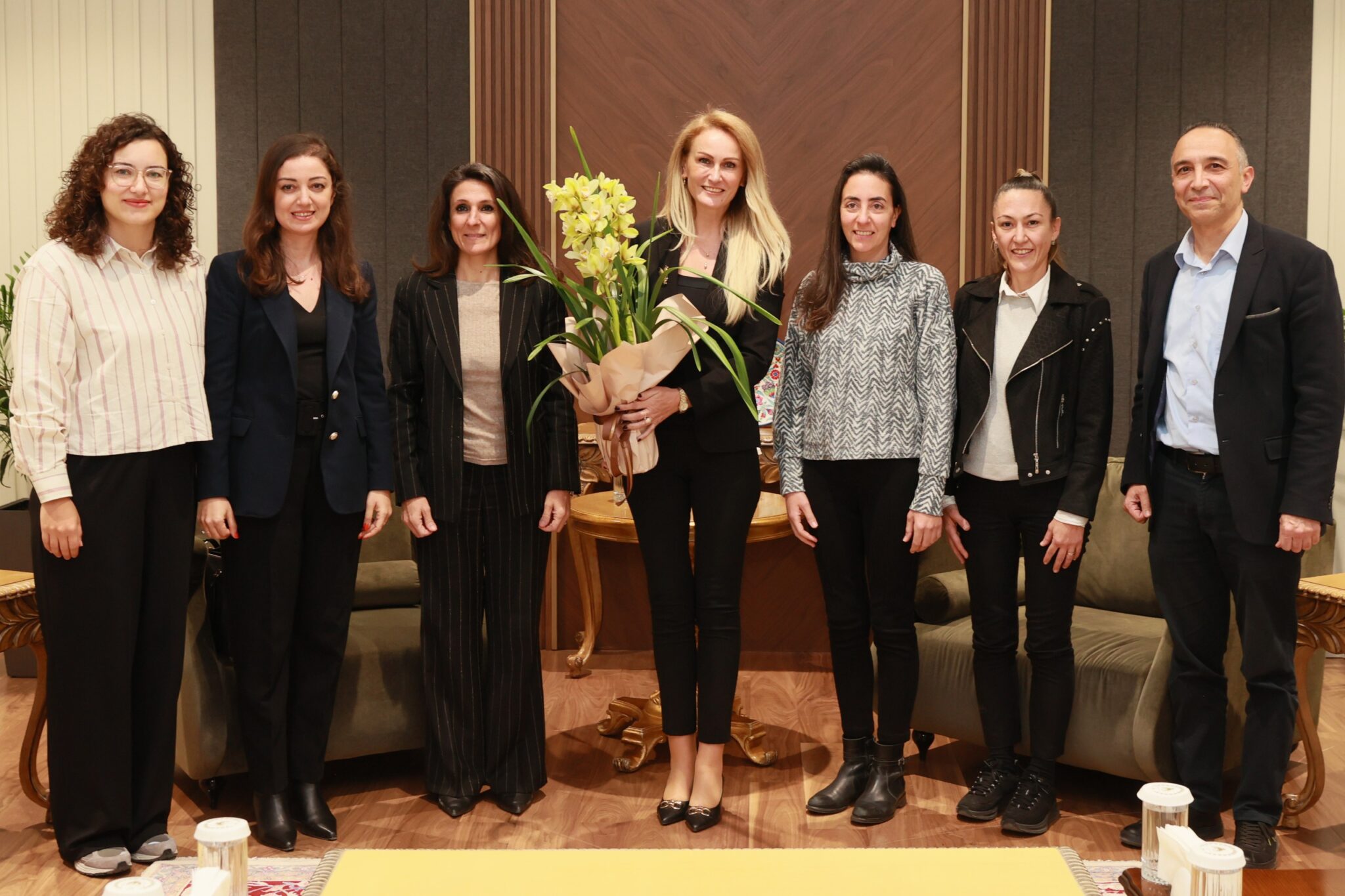 Çevre Mühendisleri Odası heyeti, Erhürman’a ziyaretleri anısına çiçek takdim etti.