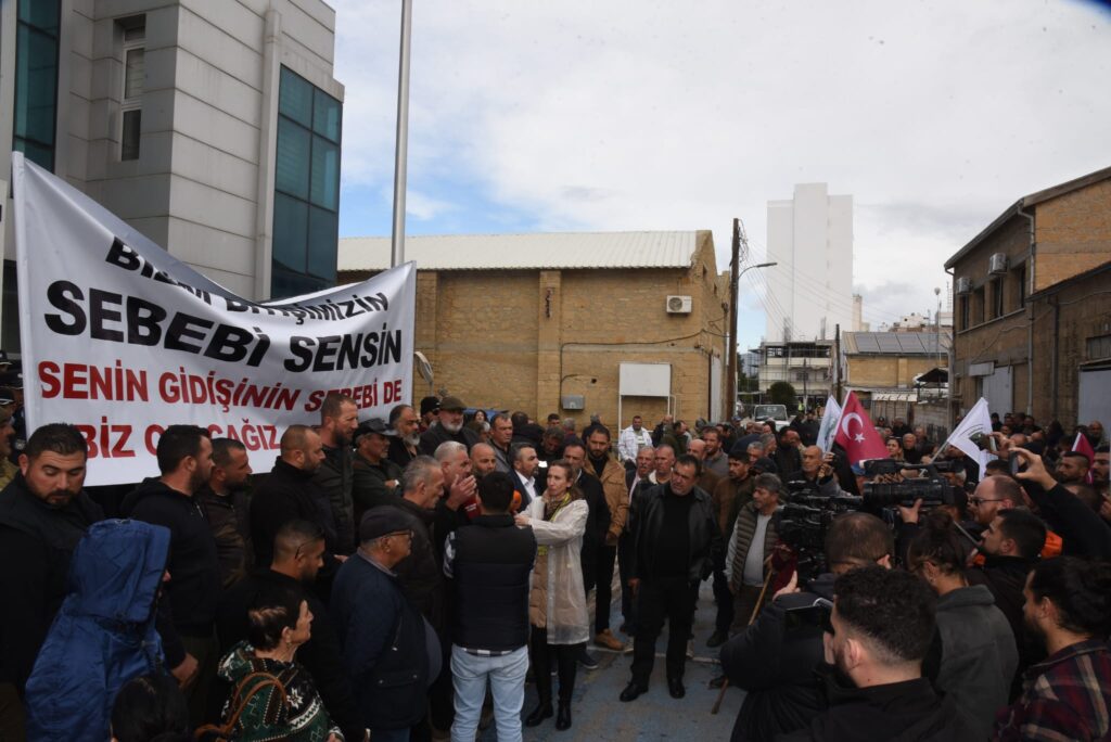 Bakanlık önünde “Bizim bitişimizin sebebi sensin, senin gidişinin sebebi de biz olacağız a bakan” yazılı pankart açan ve “gabak doğrayan” eylemciler, KKTC, TC ve birlik bayrakları taşıdı. Bakanlık önündeki eylemde davul zurna da çalındı.