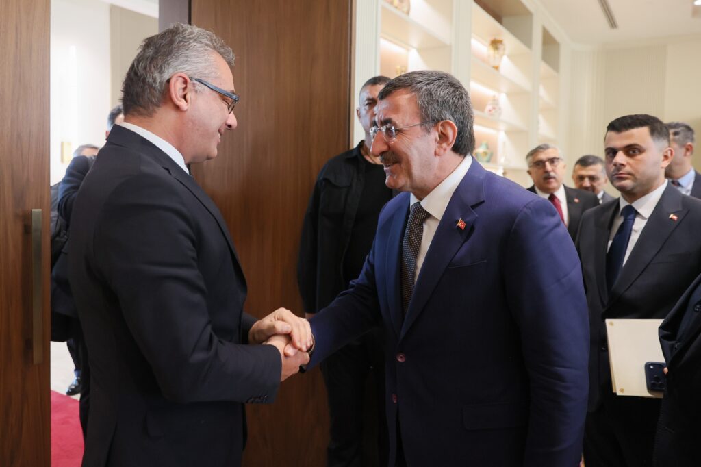 Gündem Cumhurbaşakanı Erhürman, TC Cumhurbaşkanı Yardımcısı Yılmaz’ı kabul ederek görüştü Yazar Kibris Today - 16 January 2026 Facebook'ta Paylaş Twitter'da Paylaş tweet Views: 2 Cumhurbaşkanı Tufan Erhürman, Türkiye Cumhurbaşkanı Yardımcısı Cevdet Yılmaz’ı kabul ederek görüştü. Görüşme ile ilgili olarak basına herhangi bir açıklama yapılmadı.