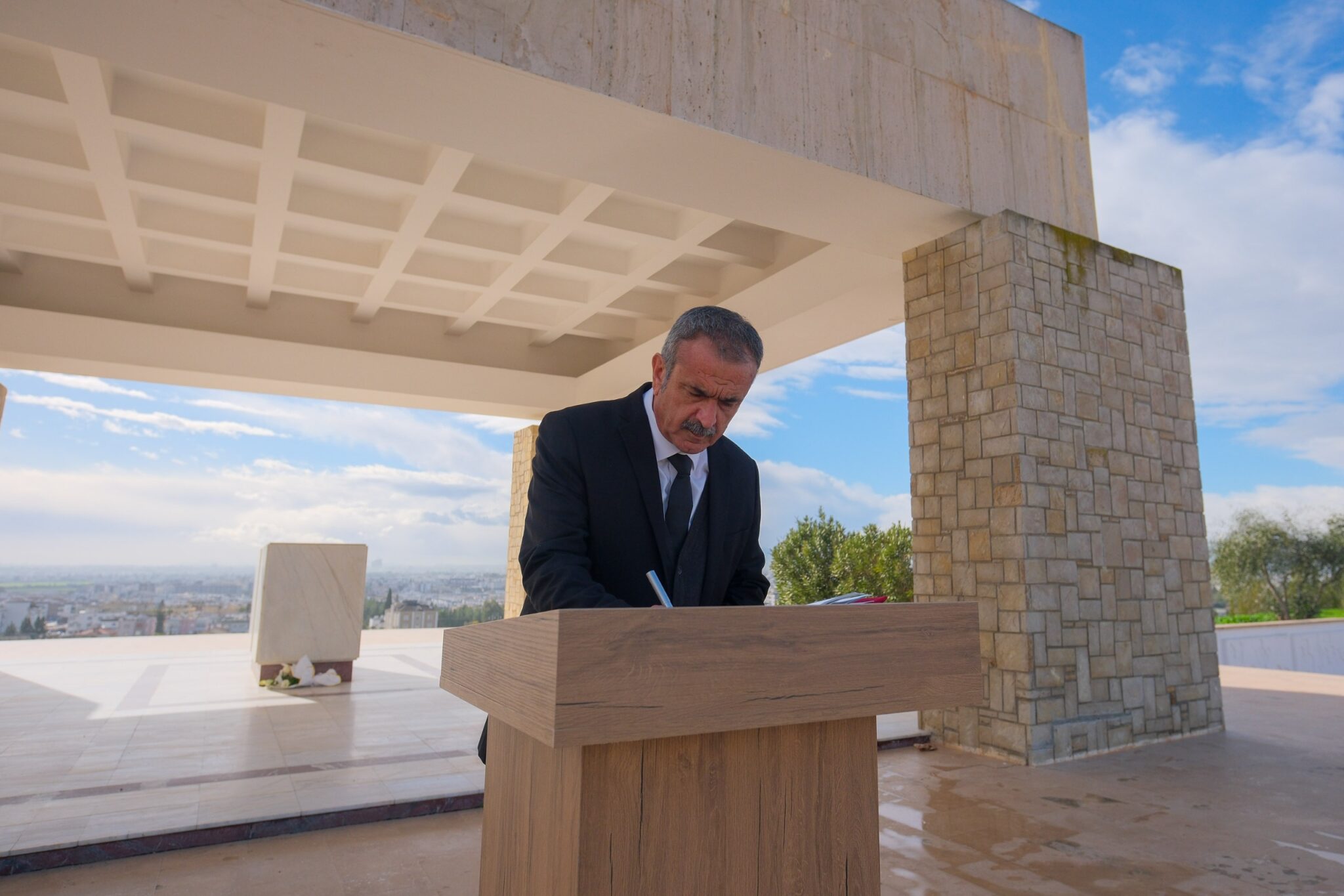 Dr. Fazıl Küçük’ü saygı ve minnetle anan Uluçay, anıta çiçek bıraktı. Ziyarette Uluçay’a Mehmet Küçük eşlik etti.