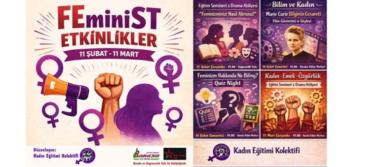 Kadın Eğitimi Kolektifinden yapılan açıklamaya göre, etkinlikler çerçevesinde 11 Şubat-11 Mart tarihleri arasında, Baraka Kültür Merkezi ve Bağımsızlık Yolu ev sahipliğinde, eğitim seminerleri, film gösterimi, sunumlar ve atölyelerden oluşan çeşitli etkinlikler yapılacak.