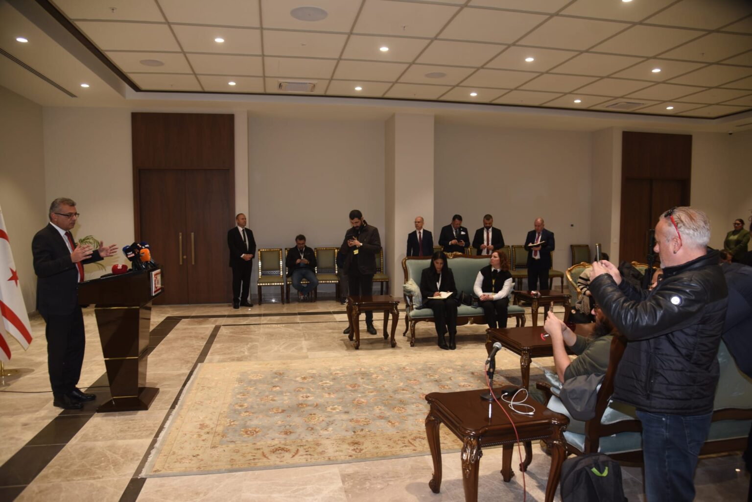 Cumhurbaşkanı Erhürman, Güney Kıbrıs Rum Yönetimi Lideri Nikos Hristodulidis ile BM Genel Sekreteri’nin Kişisel Temsilcisi Maria Angela Holguin Cuellar’ın da katıldığı görüşmenin ardından Cumhurbaşkanlığı’nda basın toplantısı düzenledi.