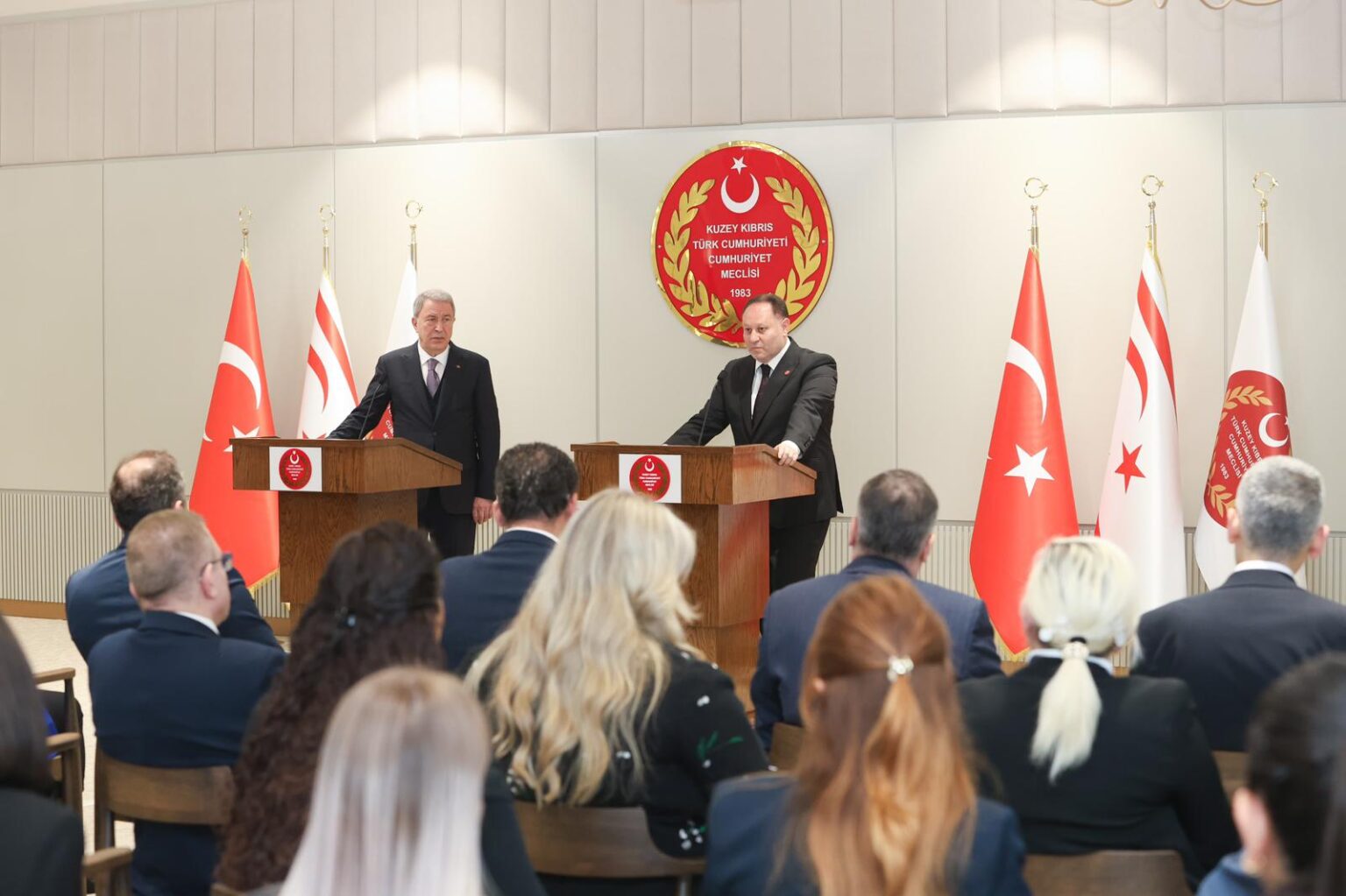 TBMM Milli Savunma Komisyonu Başkanı Akar ve Meclis Başkanı Öztürkler, görüşmenin ardından ortak basın toplantısı düzenledi.