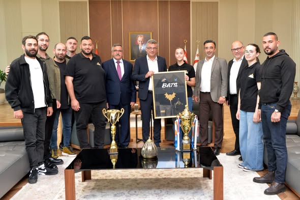 Cumhurbaşkanı Tufan Erhürman, Dikmen Belediye Başkanı Yüksel Çelebi, BTM Birinci Lig Kırmızı Grup Şampiyonu Dikmen Gücü Spor Kulübü başkanı ve sporcuları ile Derviş Mişon Kupası Şampiyonu DİGEM Hentbol Takımının antrenörü ve sporcularını kabul etti.
