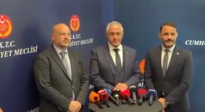 Hasan Taçoy, UBP milletvekilleri Hasan Küçük ve Emrah Yeşilırmak ile birlikte Meclis’te açıklama yaptı.