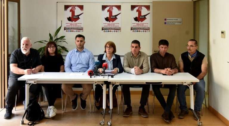Dünya Sendikalar Federasyonu’na üye Tüm Kıbrıs İşçi Sendikaları Federasyonu (PEO), Devrimci İşçi Sendikaları Federasyonu (DEV-İŞ), Kıbrıs Türk Amme Memurları Sendikası (KTAMS), Kıbrıs Türk Öğretmenler Sendikası (KTÖS), Kıbrıs Türk Orta Eğitim Öğretmenler Sendikası (KTOEÖS), Belediye Emekçileri Sendikası (BES), Kooperatif Görevlileri Sendikası (KOOP-SEN), Doğu Akdeniz Üniversitesi Akademik Personel Sendikası (DAÜ-SEN) düzenlenecek yürüyüş ve etkinlikle ilgili Dayanışma Evi’nde basın toplantısı düzenledi.